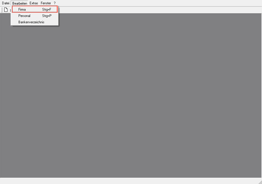 1. Wählen Sie im Hauptmenü "Bearbeiten" das Untermenü "Firma" aus. Es öffnet sich der Firmenstamm.