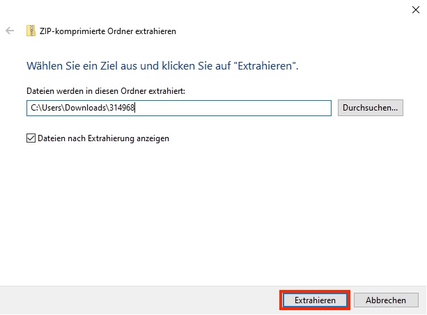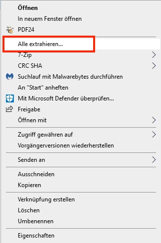 Hinweis: Bei einem Mac entpacken Sie die ".zip-Datei" im Finder mit einem Doppelklick und können so den Schritt 7. überspringen.