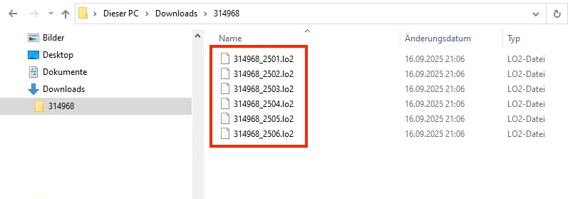 Die Importdateien erkennt man an der Dateierweiterung ".lo2" und Sie erhalten diese, unter Umständen auch gepackt als ".zip-Datei", aus einem der folgenden Gründe: