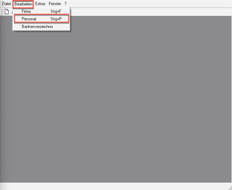 1. Wählen Sie im Hauptmenü “Bearbeiten” das Untermenü “Personal” aus.
