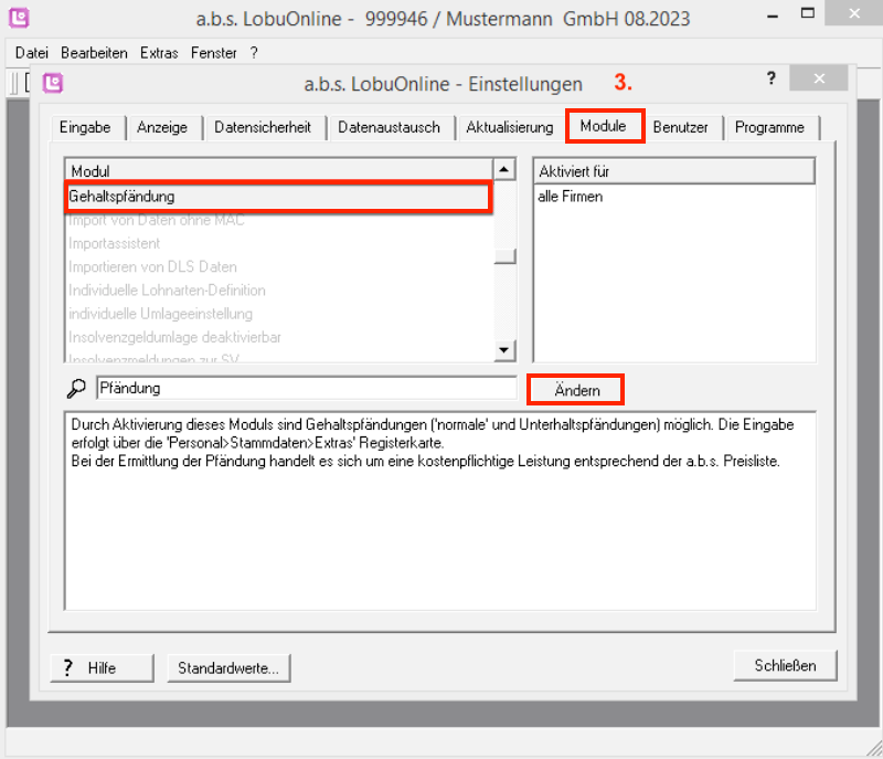 a) das Modul "Gehaltspfändung" muss für die Erfassung der Pfändungsdaten aktiviert sein