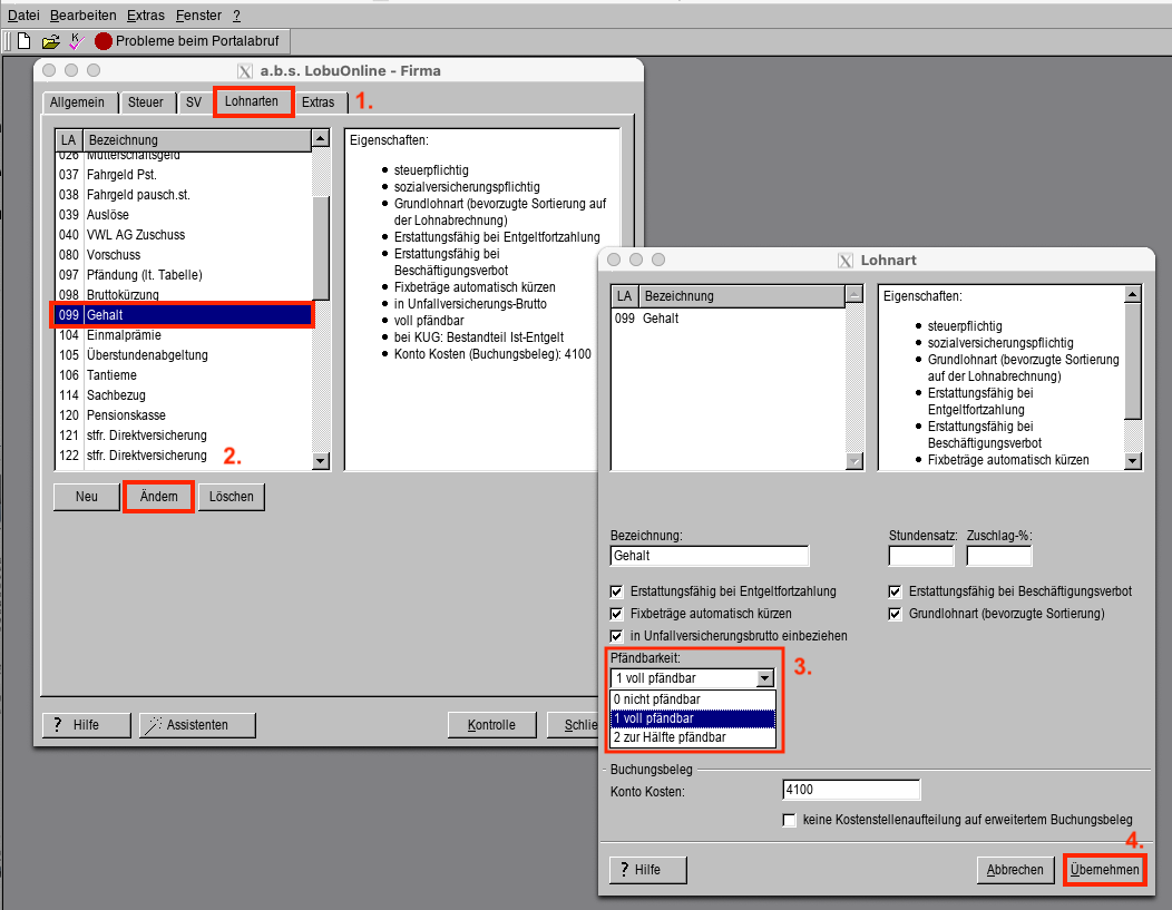 c) die pfändbaren Lohnarten sind zu definieren bzw. die Eigenschaften der verwendeten Lohnarten sind hinsichtlich Pfändbarkeit zu überprüfen/anzupassen
