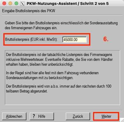 Sie sollten weiterhin den Bruttolistenpreis des Fahrzeugs und die Kilometer des einfachen Arbeitswegs zwischen Wohnung und 1. Arbeitsstätte Ihres Mitarbeiters kennen.