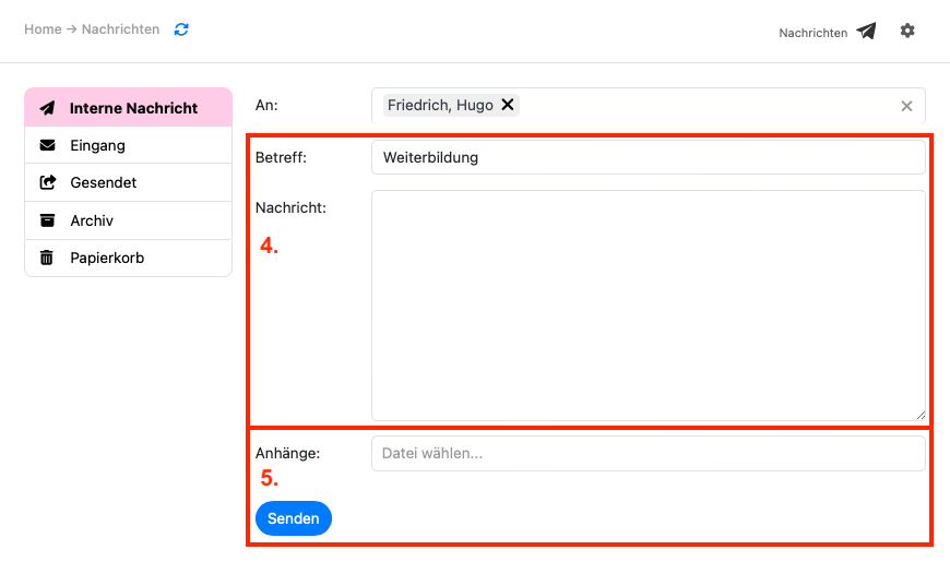 5. Fügen Sie ggf. noch Anhänge bei und klicken abschließend auf "Senden".