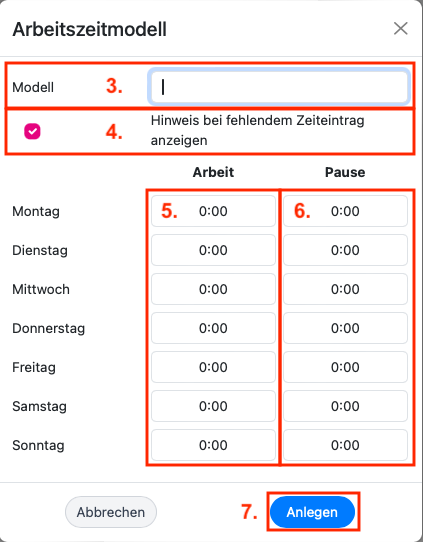Anlage eines Arbeitszeitmodells