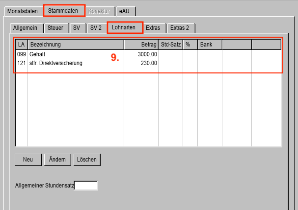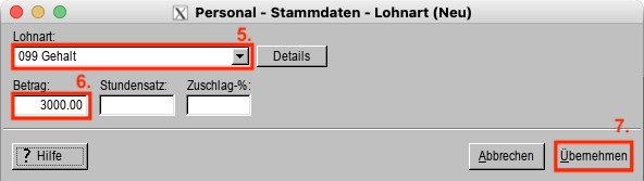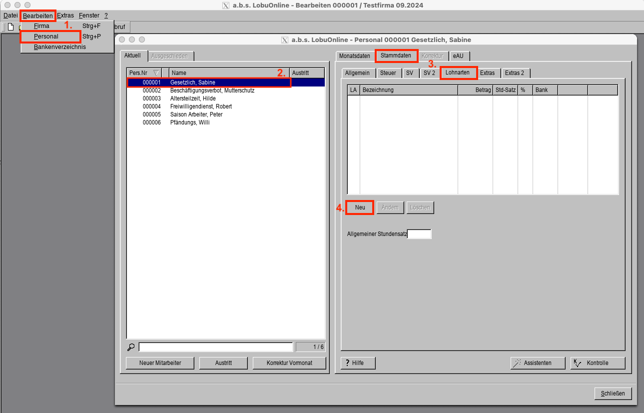 4. Klicken Sie auf die Schaltfläche "Neu", um die entsprechenden Lohnarten im Mitarbeiterstamm zu hinterlegen.