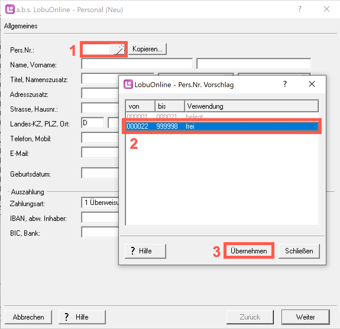 2. Wählen Sie eine der nächsten freien Personalnummern.